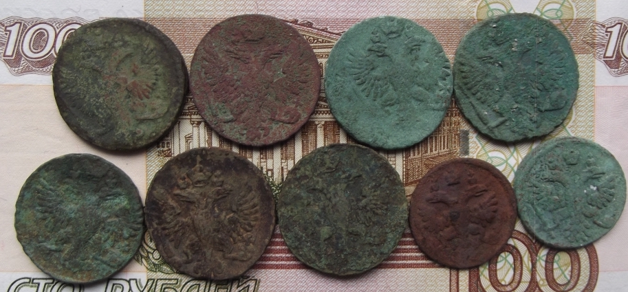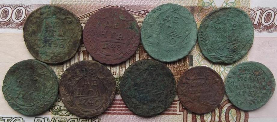 Денга 1731г с одной чертой , монета не частая . в таком состоянии на ревью , она стоит не много, ок. 100 - 300 р )