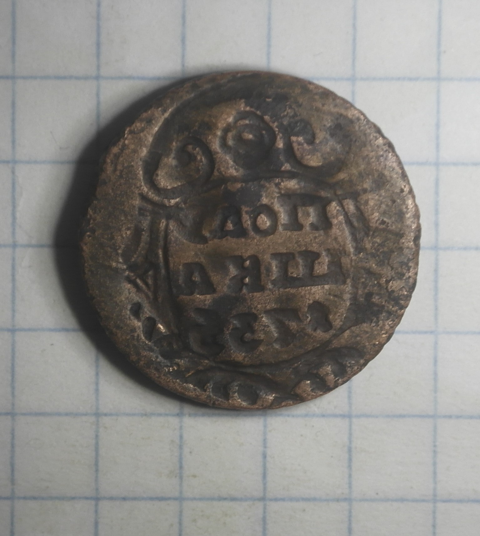 Доброго. Перечекан петровской копейки.
