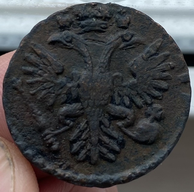 Доброе время суток, нашел вот такую полушку вчера 1721 года, подскажите в таком состоянии стоит ли чего? Всем ответившим за ранее благодарен. Всем настроение и хорошего дня.