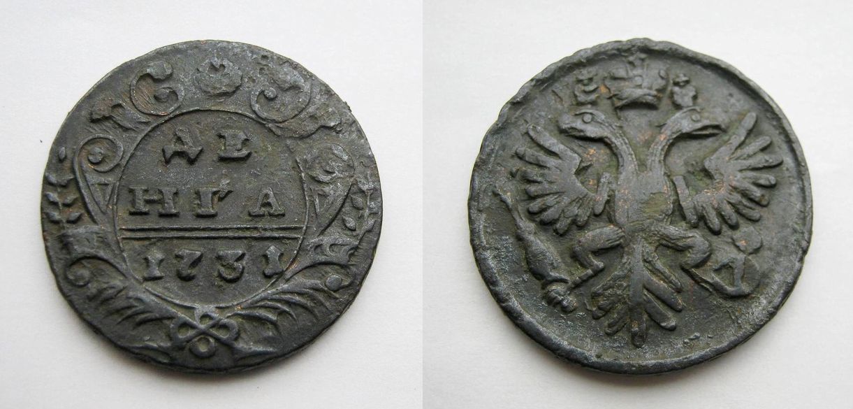 Приветствую всех! Прошу оценить полушку 1731 с передатировкой и узорчатым гуртом.