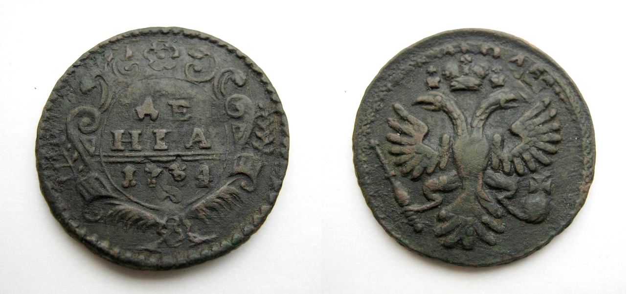 Всем добра. Прошу Вас оценить полушку 1744г. Состояние на фото. "пролечена" в растворе бта и законсервирована космолоидом. Заранее всем спасибо за ответы
