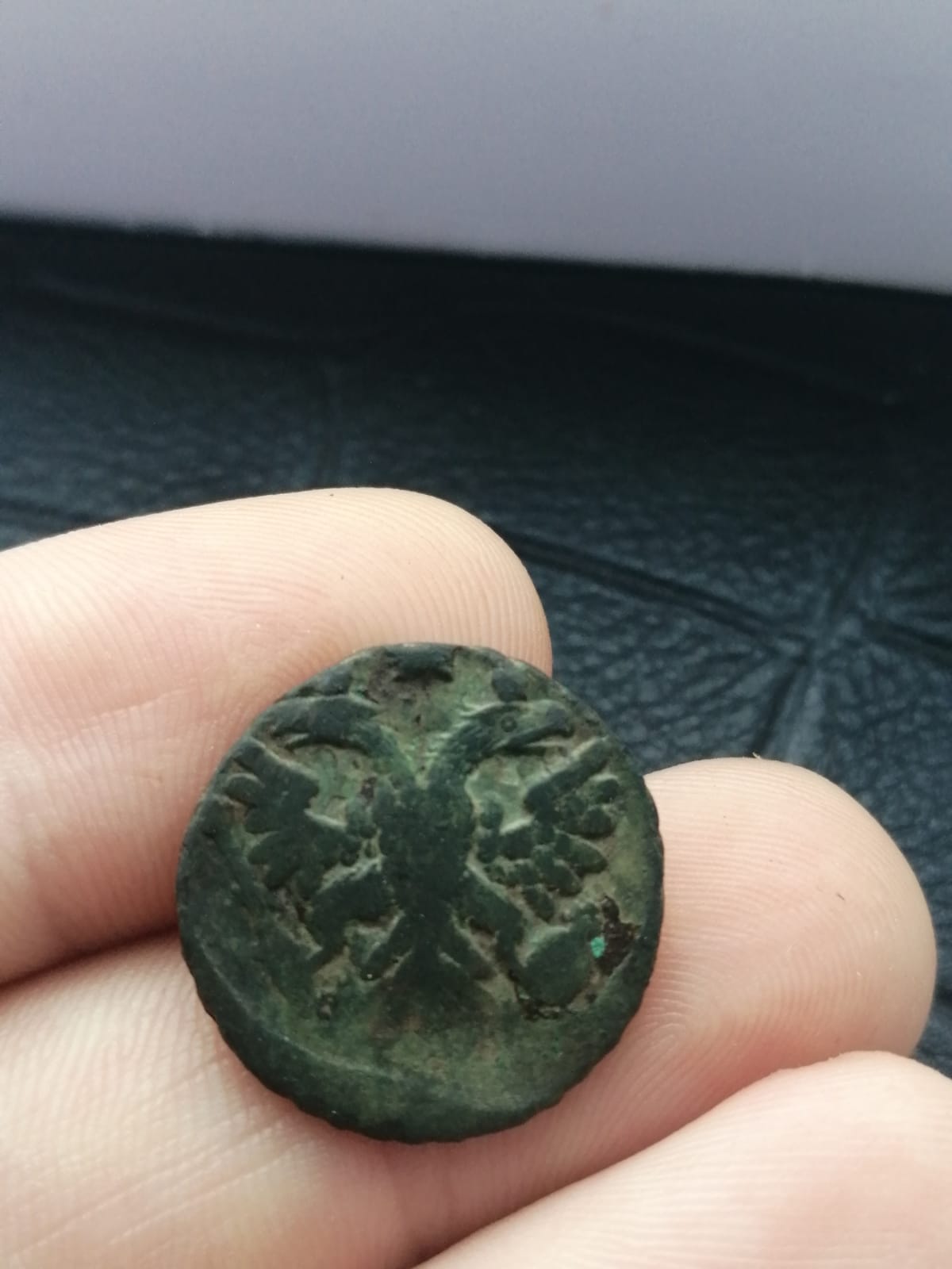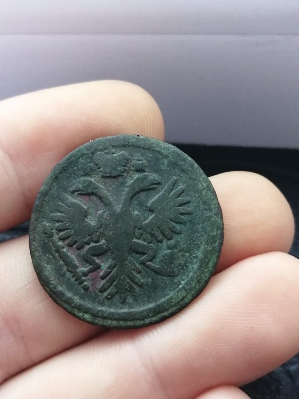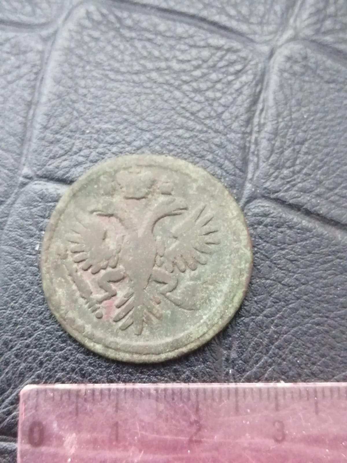 Попалась токая деньга...Подуставшая, . Надпись деньга с годом как с петровской деньги по центру