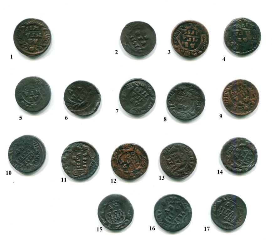 QUOTE(asserg @ Sep 27 2024, 10:43) Спасибо большое. Еще немного полушек есть. Может там что то есть? Из интересного, номер 3, полушка 1741 но совсем слабая, номер 7 1735 любителей браков может заинтересовать, и номер 8 1731 розетка 4-х лепестковая. |