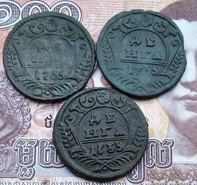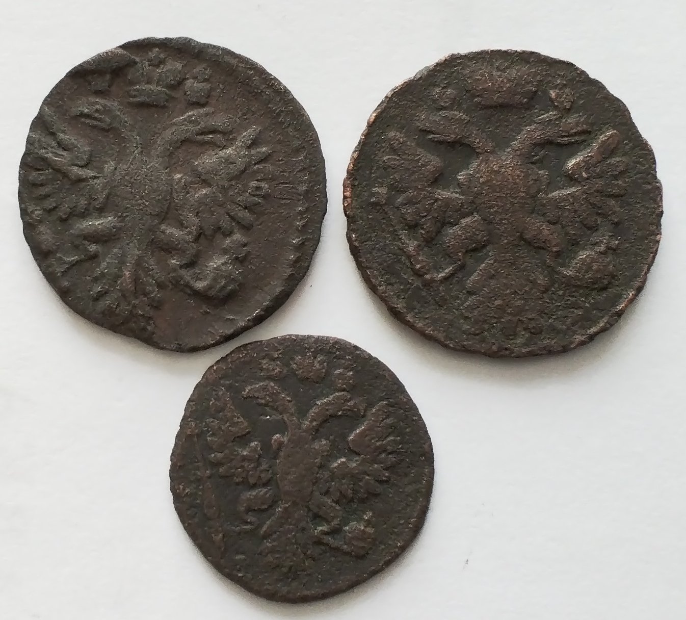 На смежном форуме задавал вопрос по денге 1735 года по поводу количества листочков. Среди представленных там описаний, аналогичные образцы отсутствовали. Ответ был, что данные признаки не считаются определяющим фактором для определения разновидностей, хотя в описаниях, представленных там, данные признаки присутствуют везде. Хотелось бы узнать, на какие основные признаки обращать внимание для определения разновидностей денег, полушек. Пока только вопрос. |