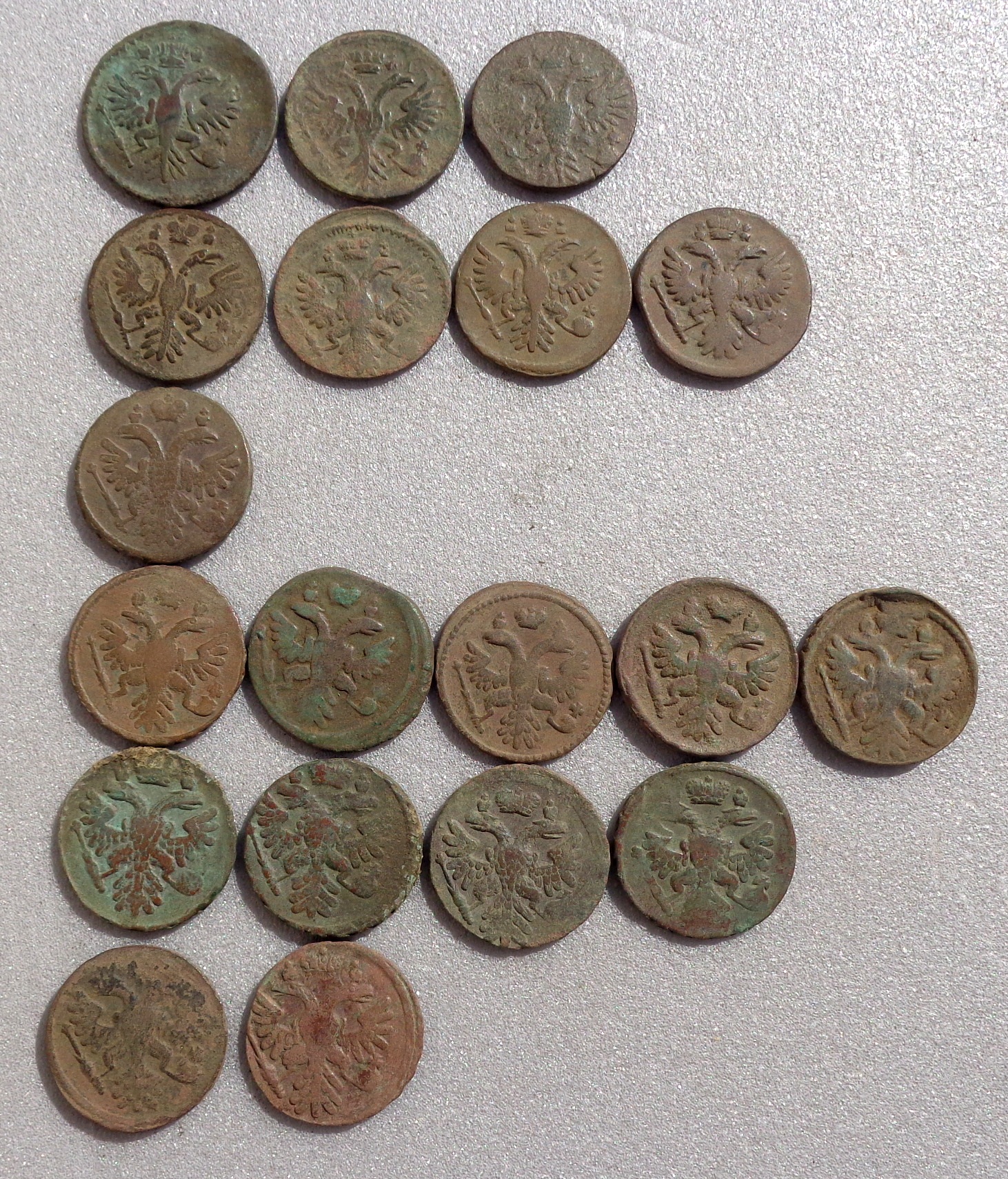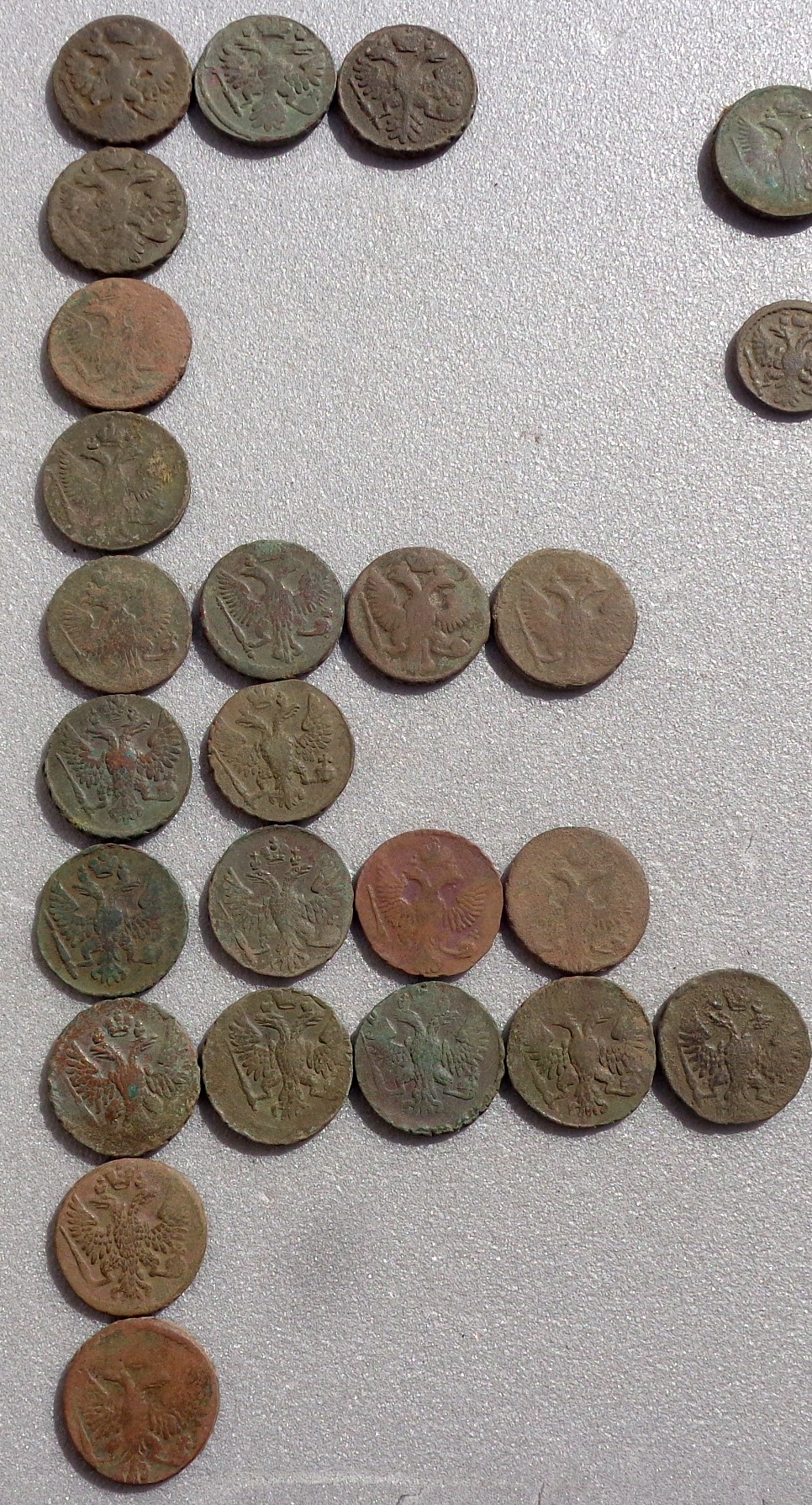 Вот попалась маленькая заначка , на однодворке в лесу. Монеты не мылись. Подскажите пожалуйста , может есть что то интересное ,или кучкой выставлять ? Монеты сфоткал по годам с верху в низ. Если будет нужно доп.фото по какой то монете, предоставлю. Буду благодарен за помощь. Вложенные эскизы изображений -------------------- Полем, полем, полем, белым-белым полем дым...