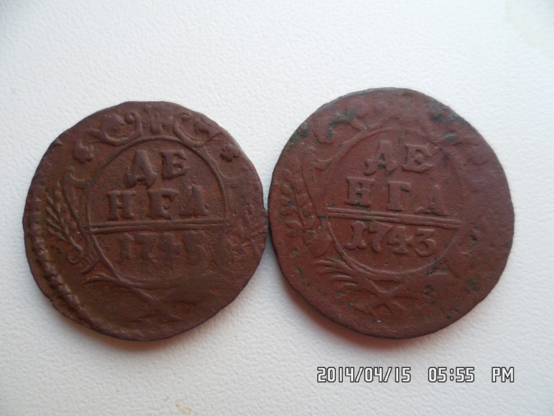 QUOTE(колодез @ May 28 2014, 09:12) подскажите ,одинаковые или разные орлики. с ув. Орлы одинаково московские 1743 года, но штемпеля разные Как вариант первая монета после ремонта штемпеля второй, но на это оставляю 10% т.к. ...ИМХО |