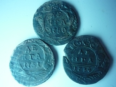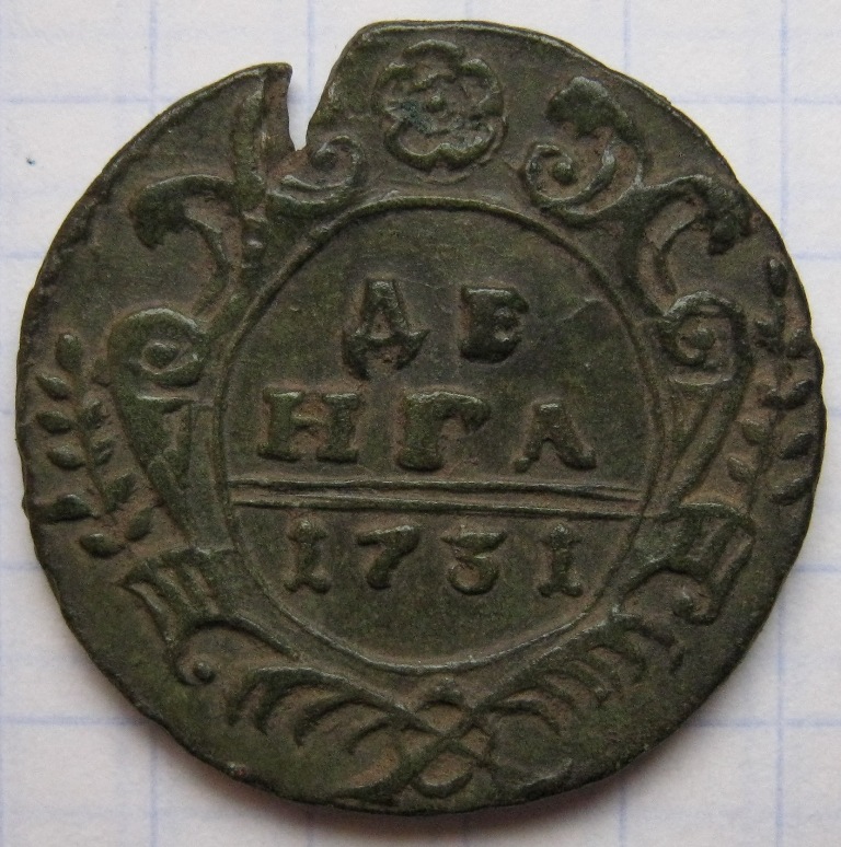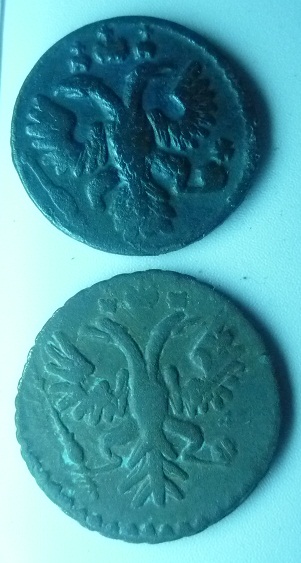 Здравствуйте! Помогите, пожалуйста! Я не фанат разбирания разновидностей "цариц полей" и денег и полушек, а вот эта полушка показалась мне не совсем обычной! Имею ввиду украшение вверху на аверсе и хвост орла?! Они такие и должны быть в 1736 году?! Есть целое ведерко "цариц", но не хочется в нем копаться и искать с чем сравнивать! Заранее благодарен! С уважением, Александр.