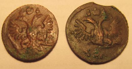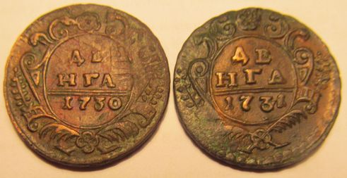 Уважаемые нумизматы оцените монетки 1) Деньга 1731 г.