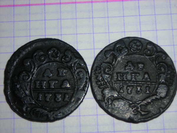 Денга 1731 ("пьяный" орел) Денга 1731(розетка " медуза") Денга 1739 ( московская) |