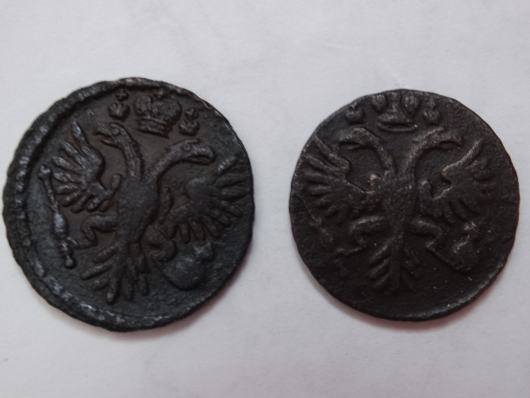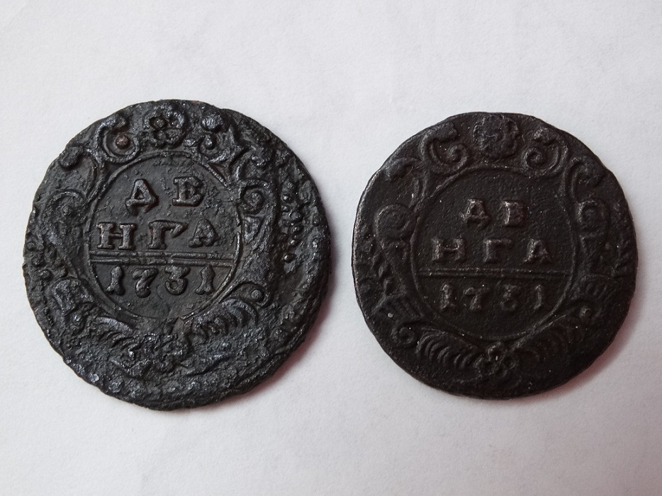 Приветствую всех кто уделил внимание. Кто в теме подскажите по степени редкости деньги 1730 перечекан, шипы наи коленях у орла и деньги 1736 года. По возможности укажите преблизительную стоимость. Заранее спасибо.