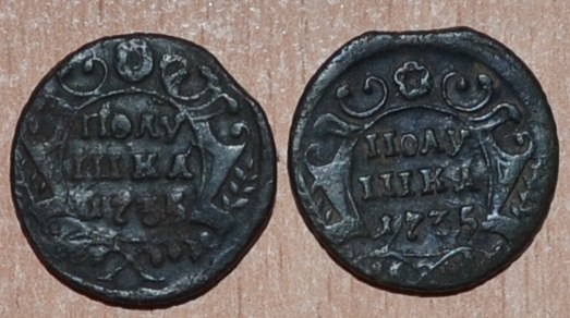 подскажите пожалуйста две полушки год один а орлы разные и и на лицевой стороне монеты внизу украшение а на другой нет будут ли что стоить
