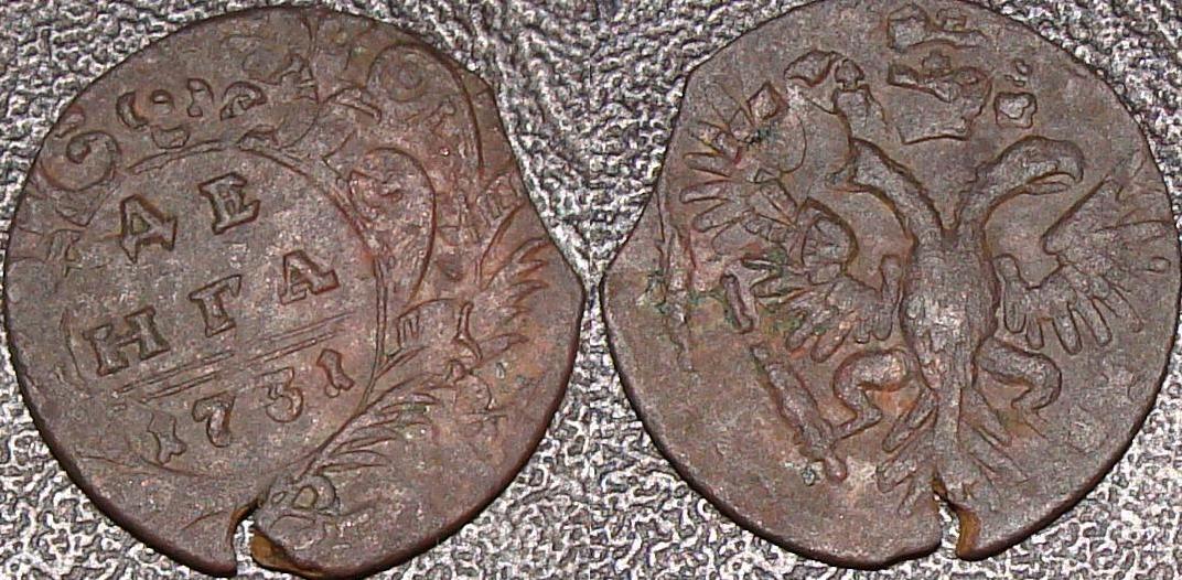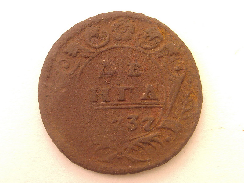 Деньга 1737 года. Орёл какой-то дохлый, зато перьев много по сравнению с другими, показанными ранее(таких и у меня много), часто ли попадаются такие монеты.