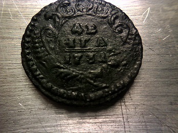 может непрочекан, может перечекан так лег, только гадать можно. Была мелкая розетка (которая с 1730 года идет)
