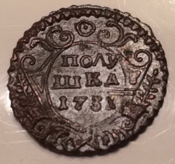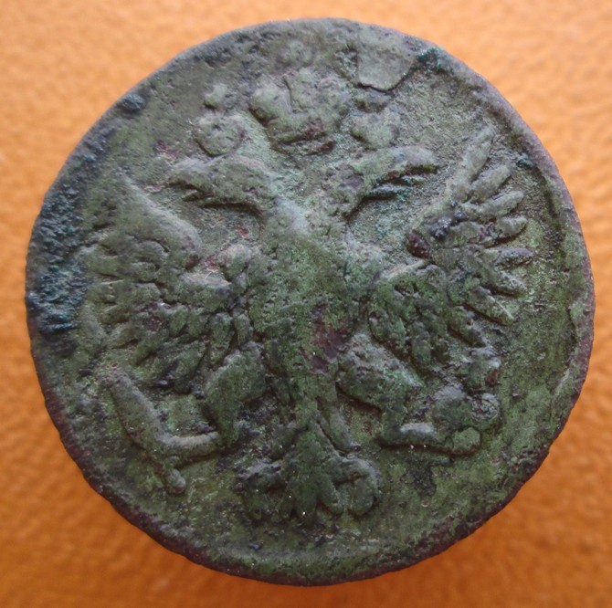 Здравствуйте,помогите определить разновидность и оценить деньгу 1735,очень крепкая,гурт отличная сетка,еще не купалась. Спасибо