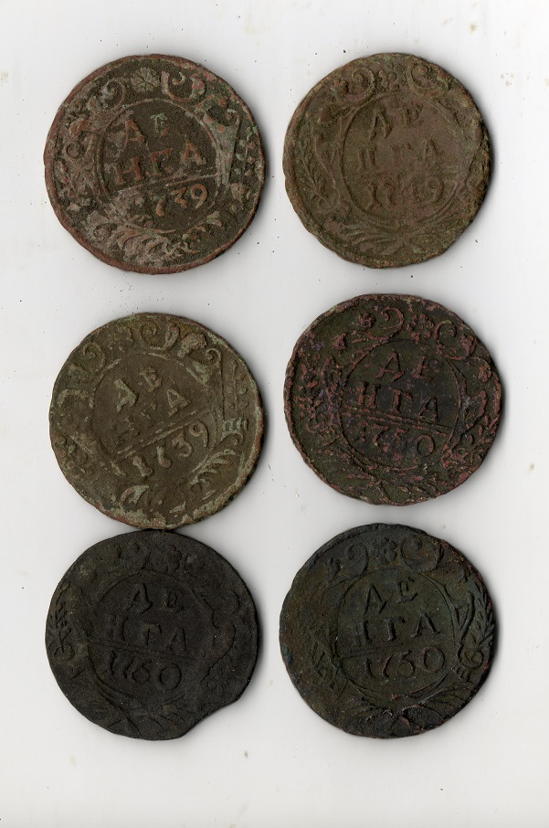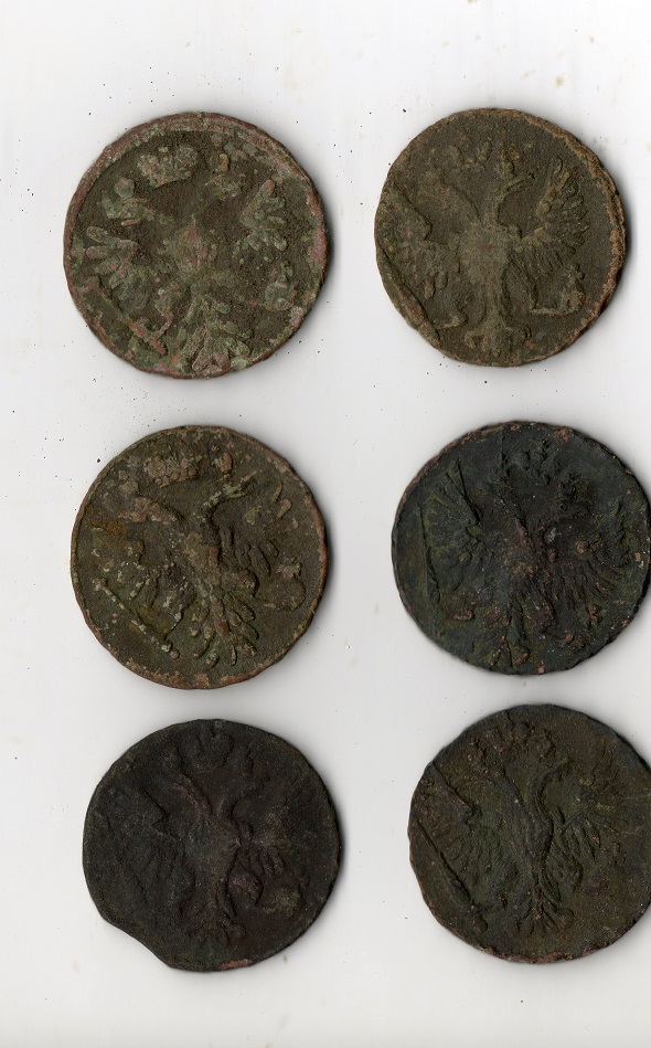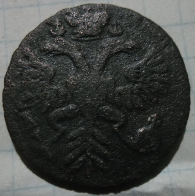Добрый вечер.Сегодня нашол у себя в кубышке Деньгу 1730 года и заметил что у орла в хвосте семь перьев,девять в крыльях,в клювах язычки,корона преподнята.Это норма для этого года или особенность?