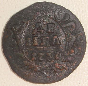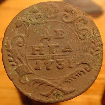 простейшая дегна 1731 года, но какая великолепная по исполнению буква "Д" Вложенные эскизы изображений -------------------- Куплю кладовые денга и полушка 1730-54 г.г.