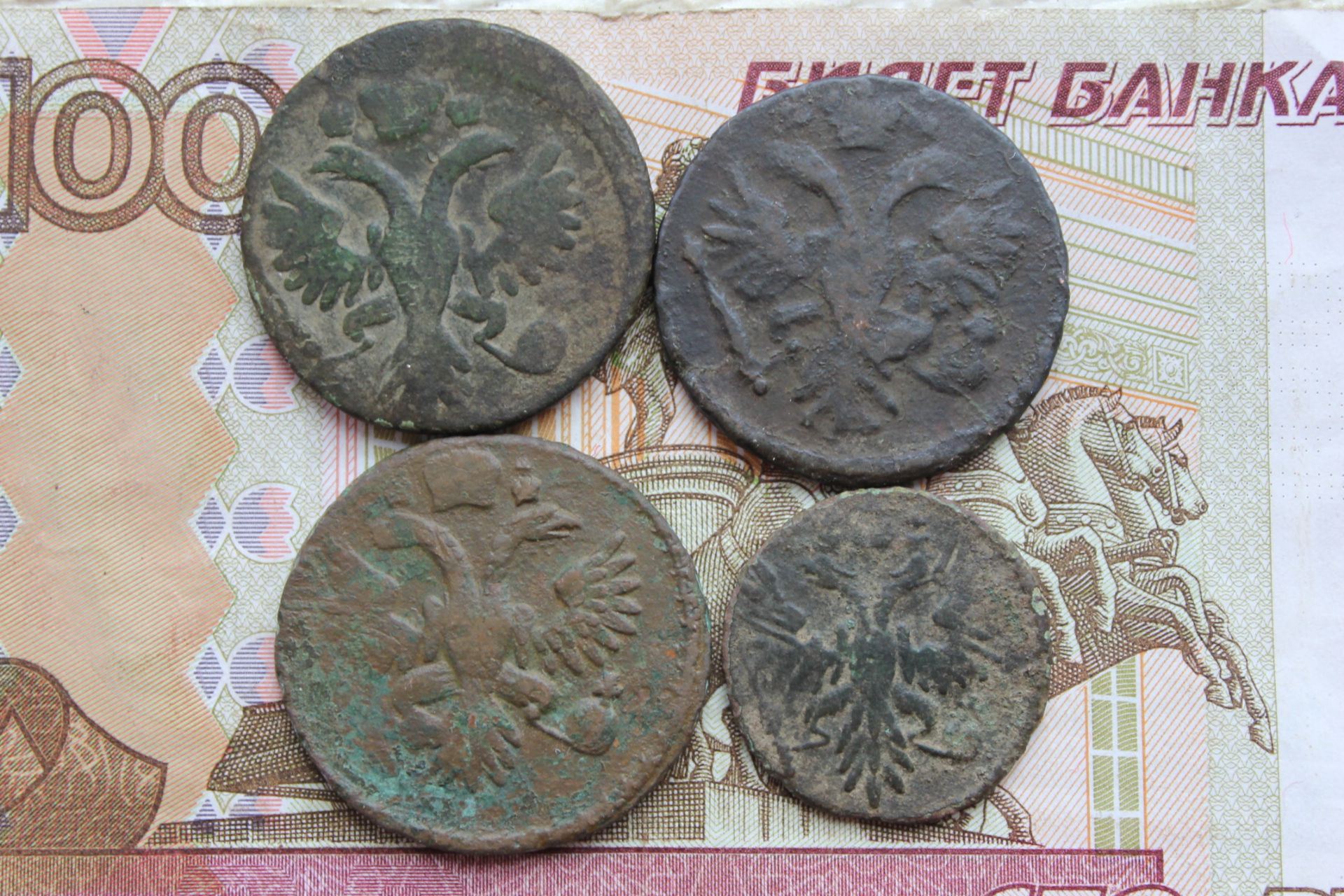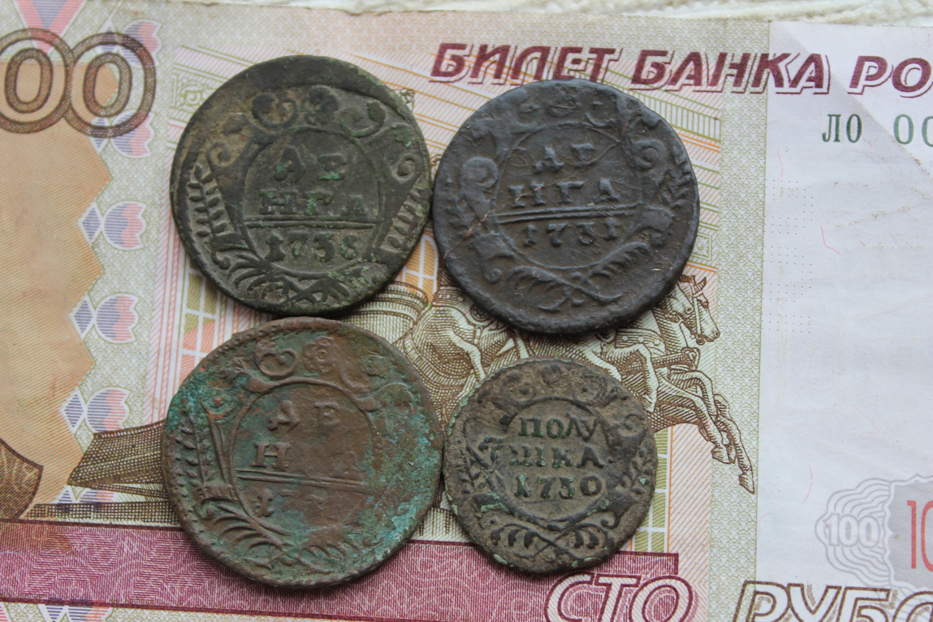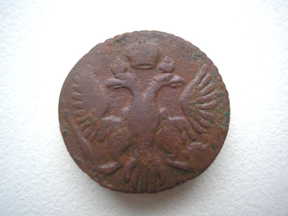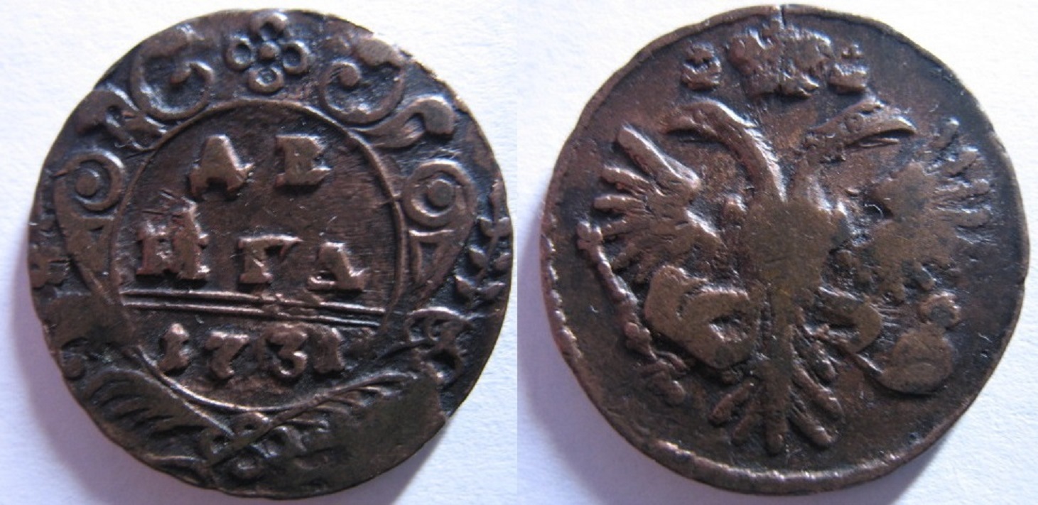 Доброго всем дня, и с Рождеством Христовым! Подскажите по деньге 1731 года с одной чертой, сам определить так и не смог иоцените в таком состоянии.Заранее спасибо!!!