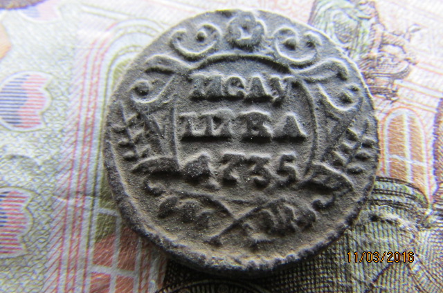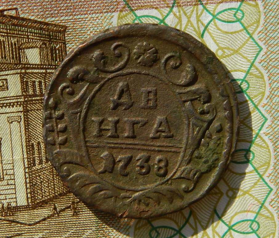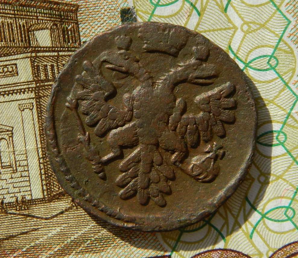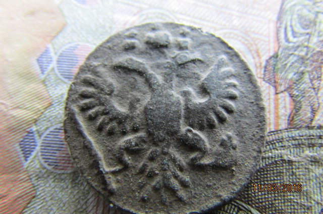 QUOTE(arhin @ Mar 9 2016, 18:18) следы от копейки, хотя больше похоже на арабеску, там и на банту какие-то отпечатки присутствуют Рискну предположить что это кусок М и о от самодержца, наличие остатков линейного ободка на банте тоже говорит в эту пользу |