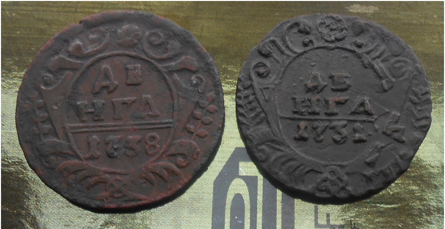А не скажите денга 1731 год с какой монеты перечекан. просто окончание видится. ки. а не ка. как у петровской копейки. да и чёрточка над годом одна.
