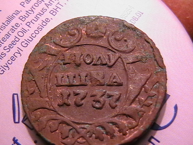 попрошу спецов определить монету мне кажется или это чекан екатеринбургского мондвора полушка 1737 года с мелкими цифрами или это просто разновидность штемпеля? ![]() -------------------- ...и каждый день как пропасть, бросаешься туда и принимаешь бой с самим собой...