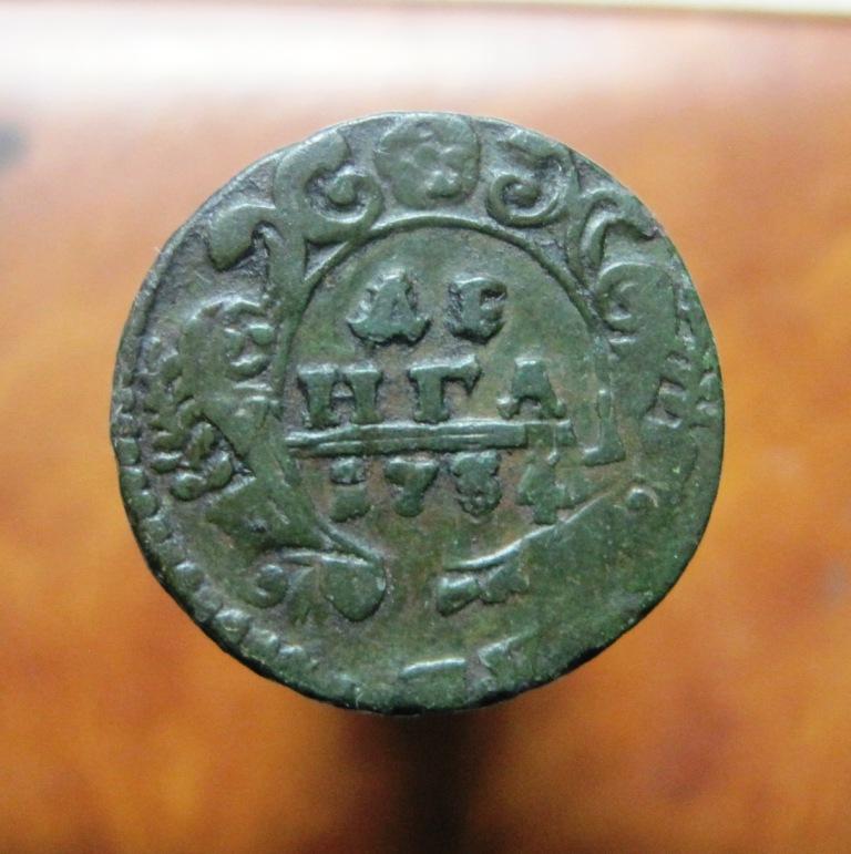 Попалась денга 1753 г. с гладким гуртом . Какую - нибудь ценность представляет ?