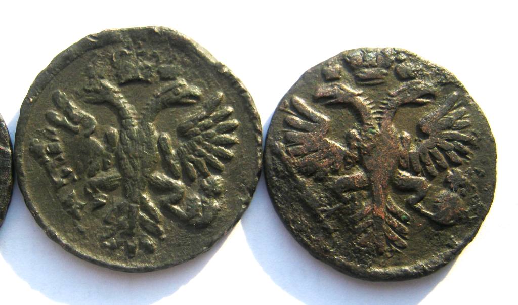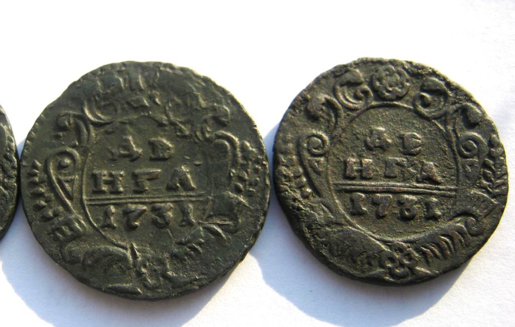 Здравствуйте! Будет ли интерес на аукционе к двум деньгам 1731 г? На мой взляд: разные орлики.Приблизительная цена?