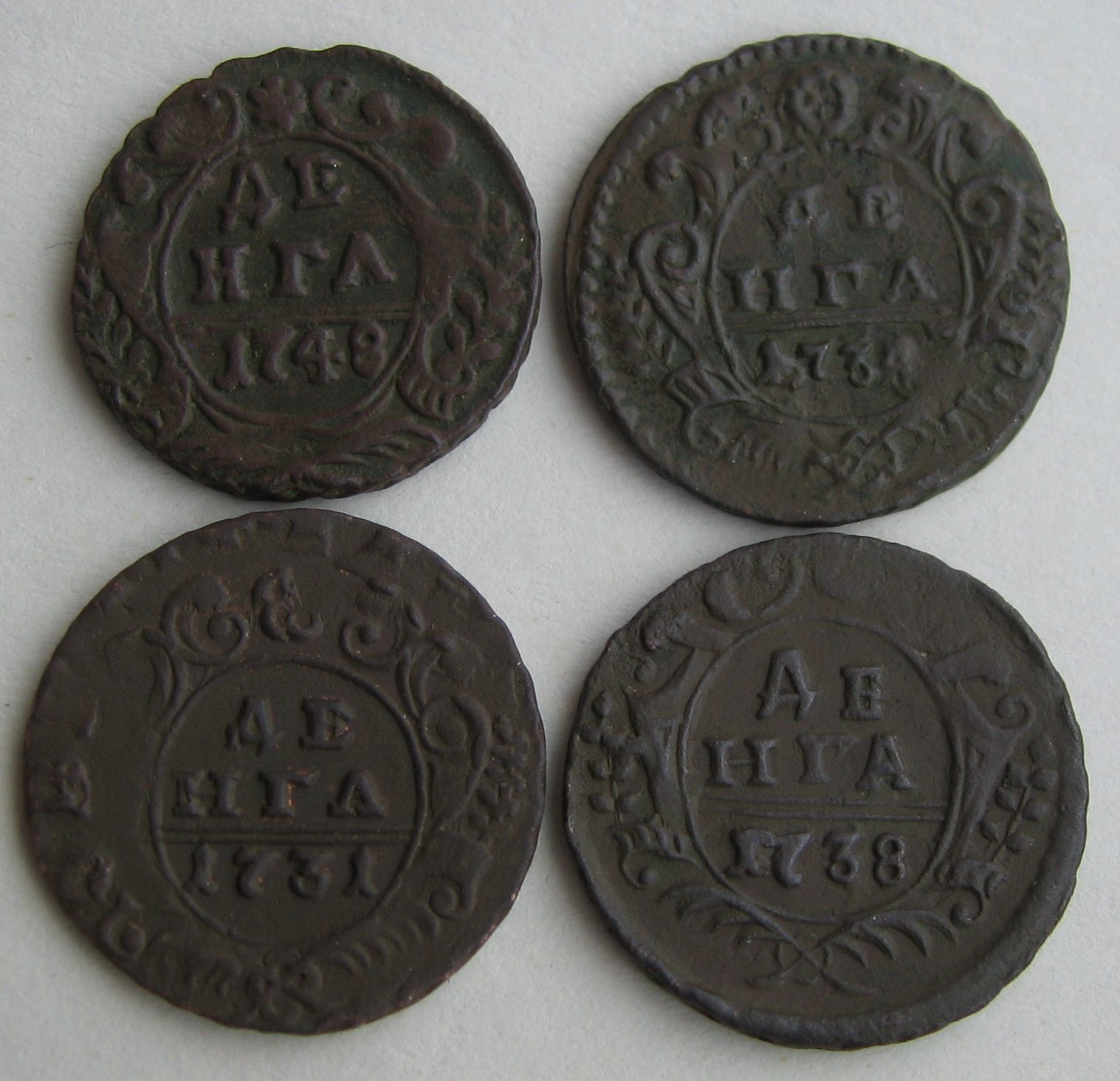 QUOTE(Streletzzz @ Nov 21 2016, 13:10) Деньга 1749 полушка 1735 просьба оценить за ранее спасибо! Фото полушки не полностью, но и так видно, что монеты простые, не дорогие. -------------------- Я не Иван, я Иваны́ч...