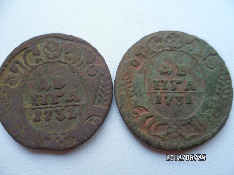 Господа, подскажите по вот такой денге 1731 года, ... орел немного странноват ... есть что интересное?