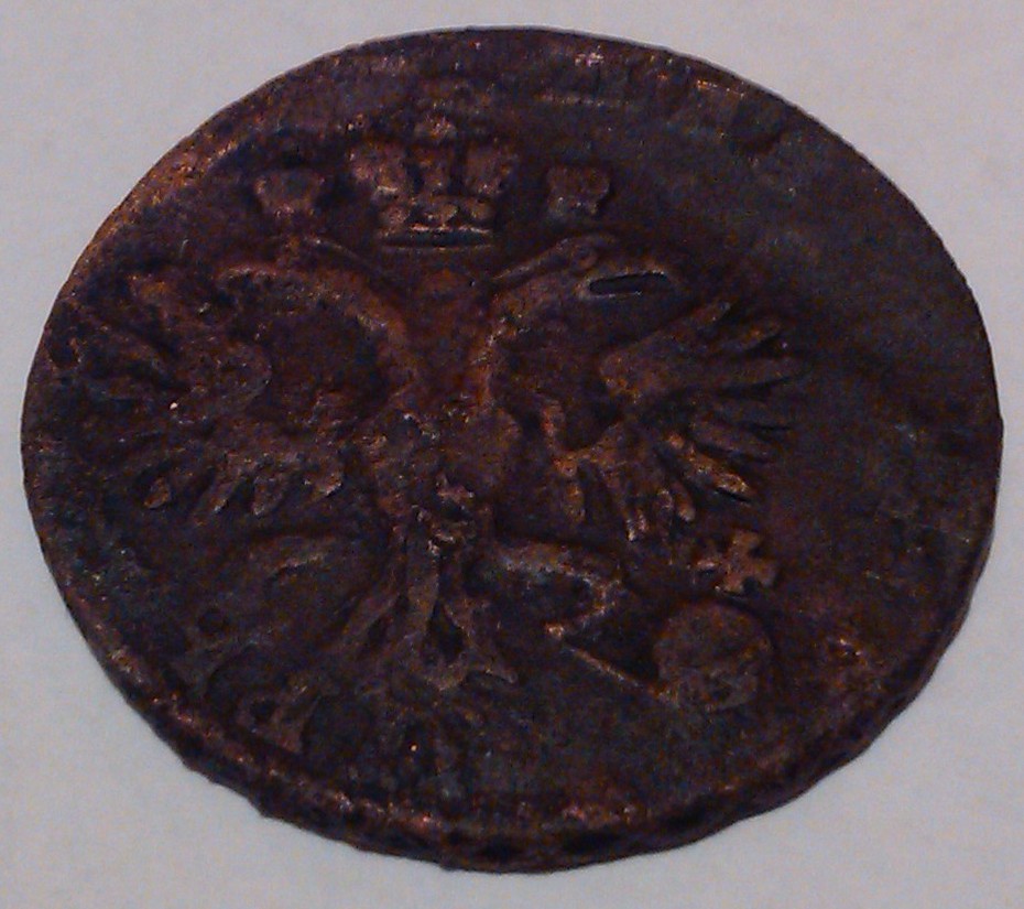 Доброго времени суток всем! Прошу подсказать по вот такой денге 1735 года. Перечекан я так понял с Петровской копейки и этот вариант достаточно редкий. Если можно по цене подскажите.