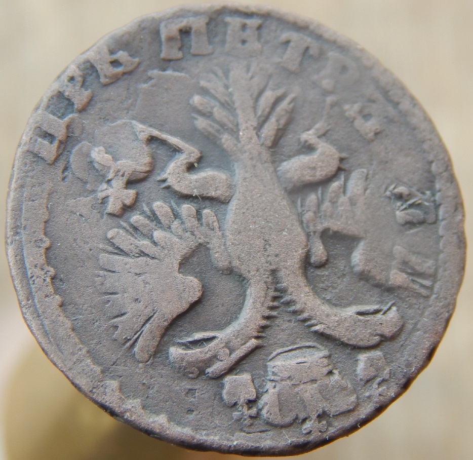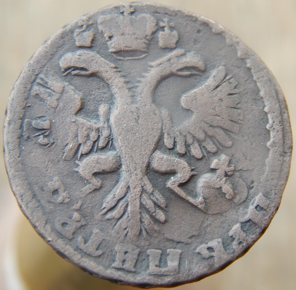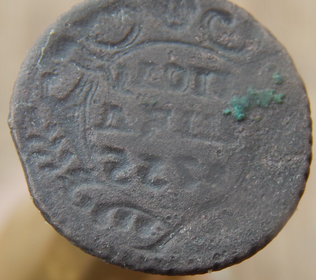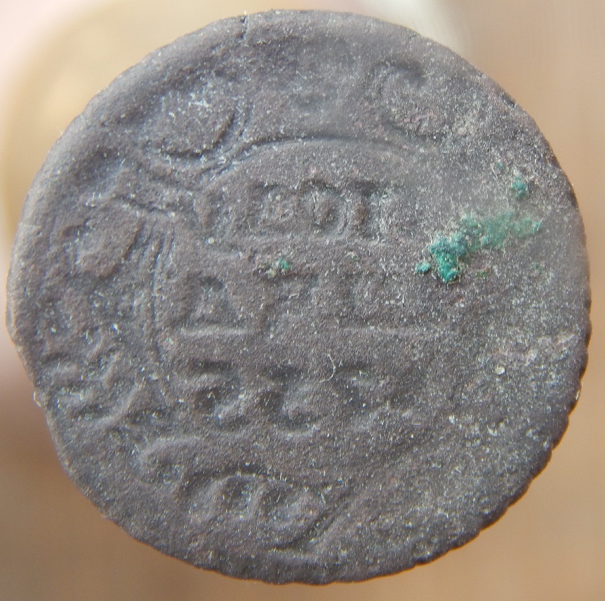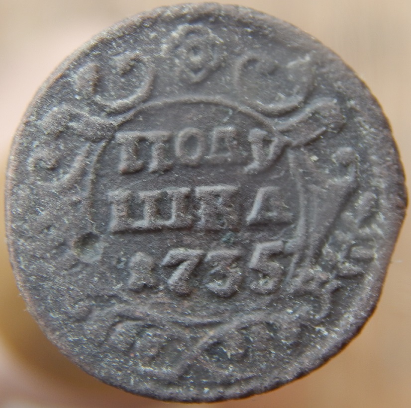 хотя деньги на кружке от полушек вроде как известны, тут явно полушка. Просто сгнила уже до такого состояния, что можно что угодно прочитать, хоть копейка. |