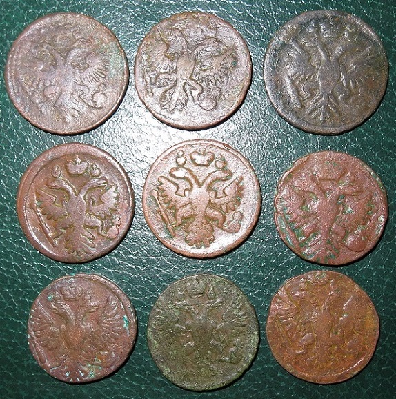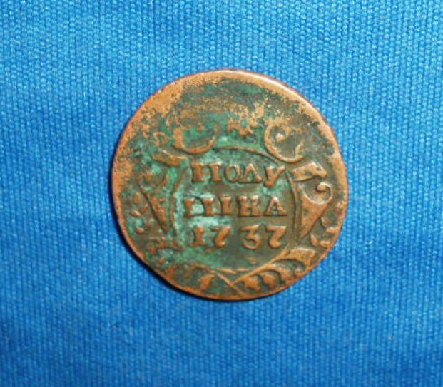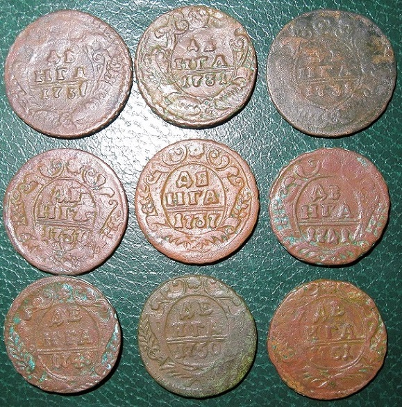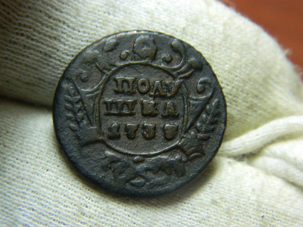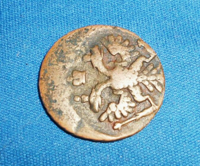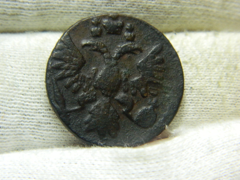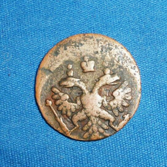 Добрый день .перебирая монеты для аукциона ,нашел деньгу 1748 г. с интересной ? короной аверса.такое впечатление , что набита плансоном для голов орла .вес 10.83гр. что думаете господа ? Будет интерес ?