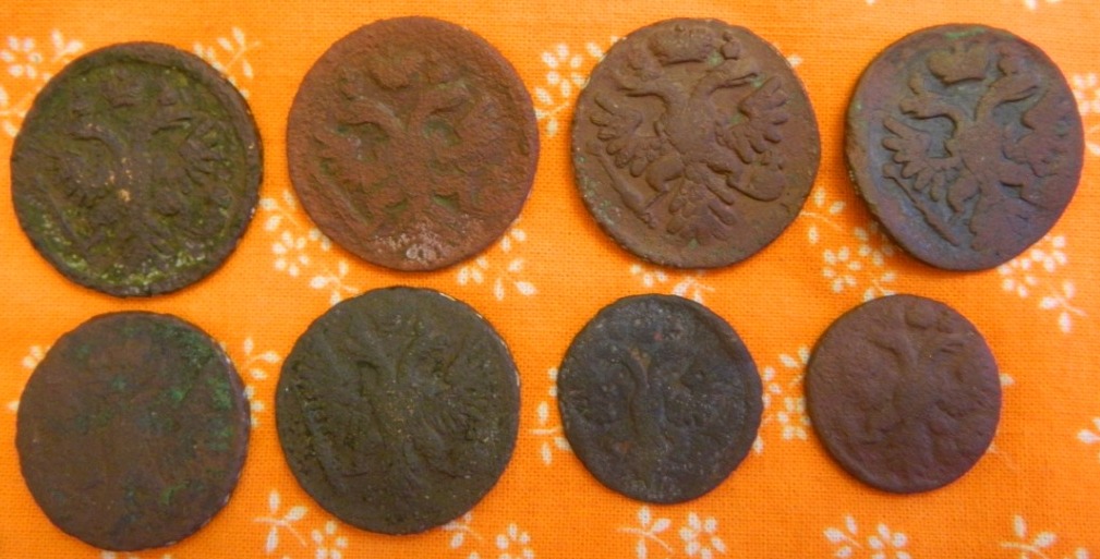 QUOTE(fazer @ Jun 1 2017, 12:02) деньга 1739 г московская . Ильин 5руб Благодарю за помощь. Подскажите пожалуйста, еще по орлу на 4 монете в верхнем ряду. Он, какой-то маленький, и толстый |