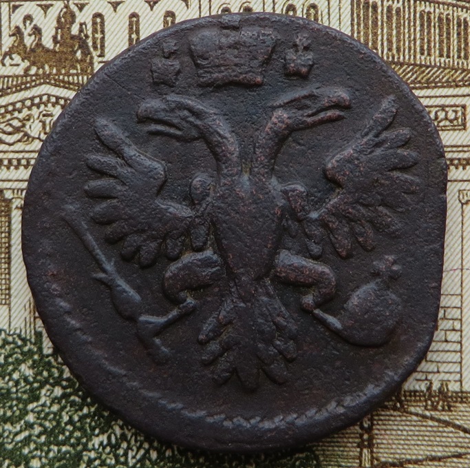 То есть у меня шаблон №5, розетка образца 1734г., пяти лепестковая, в форме цветка с прожилками но аверс № 9: орёл образца 1737г., девять перьев в одном крыле и десять в другом, хвост орла - по три ряда перьев с каждой стороны, крест державы с гастами, центральная корона прямоугольной формы получается так.