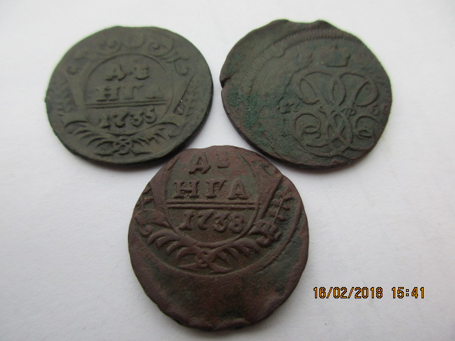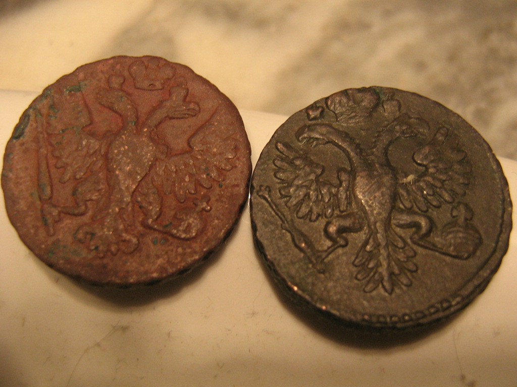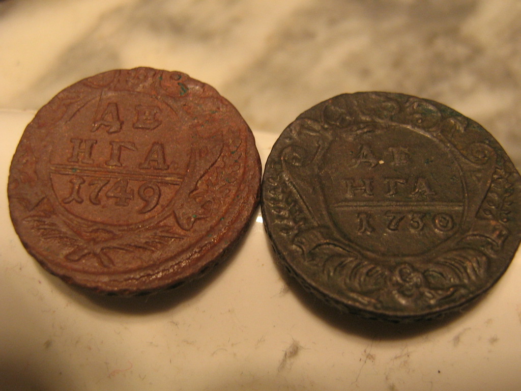 Доброго времени. Попались 2 Денги с одной чертой. Будут ли иметь интерес? 1730го и 1731го. Первая понимаю что убита