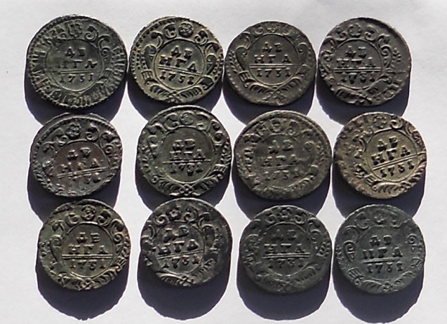 это полушка 1731 г , хорошо видна цифра 8 от копейки Петра 2 . вот за это , уже 300р должна стоить )