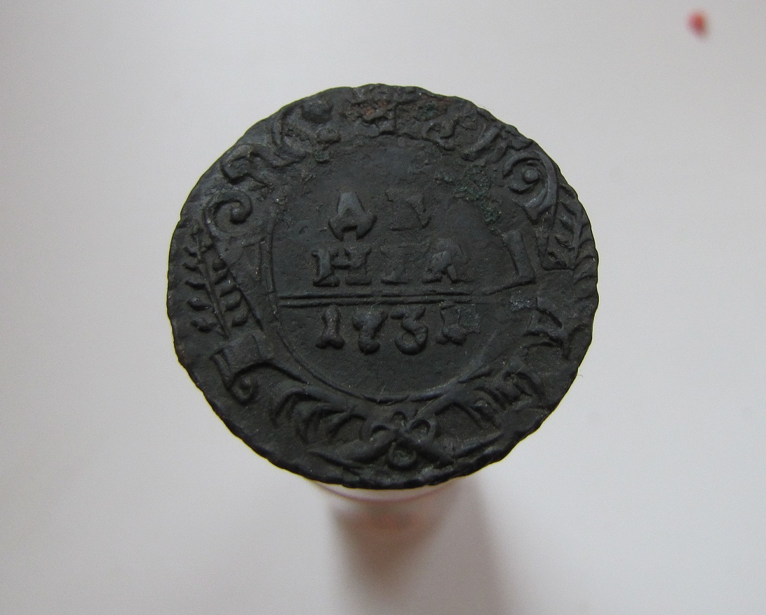 Денга 1730 -31 г все перечеканы с копеек Петра 1.остаться от них , может все что угодно .