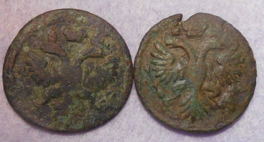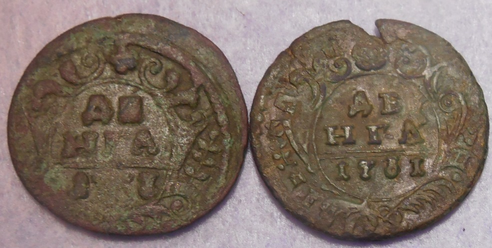 Добрый вечер уважаемые коллеги. Имеются две полушки 1735 и 1731 годов. Подскажите