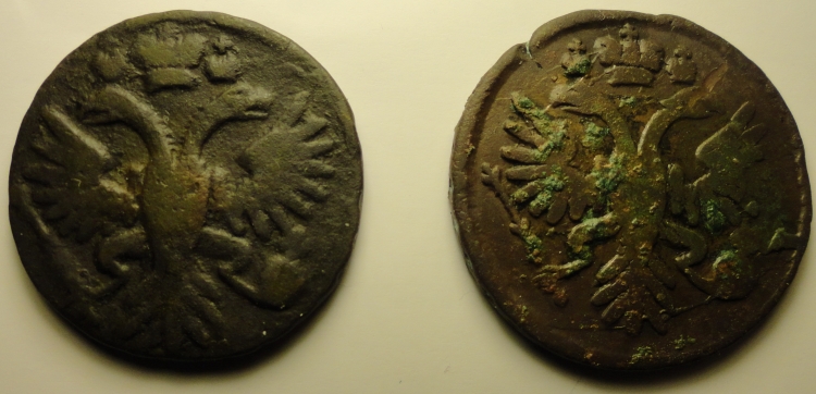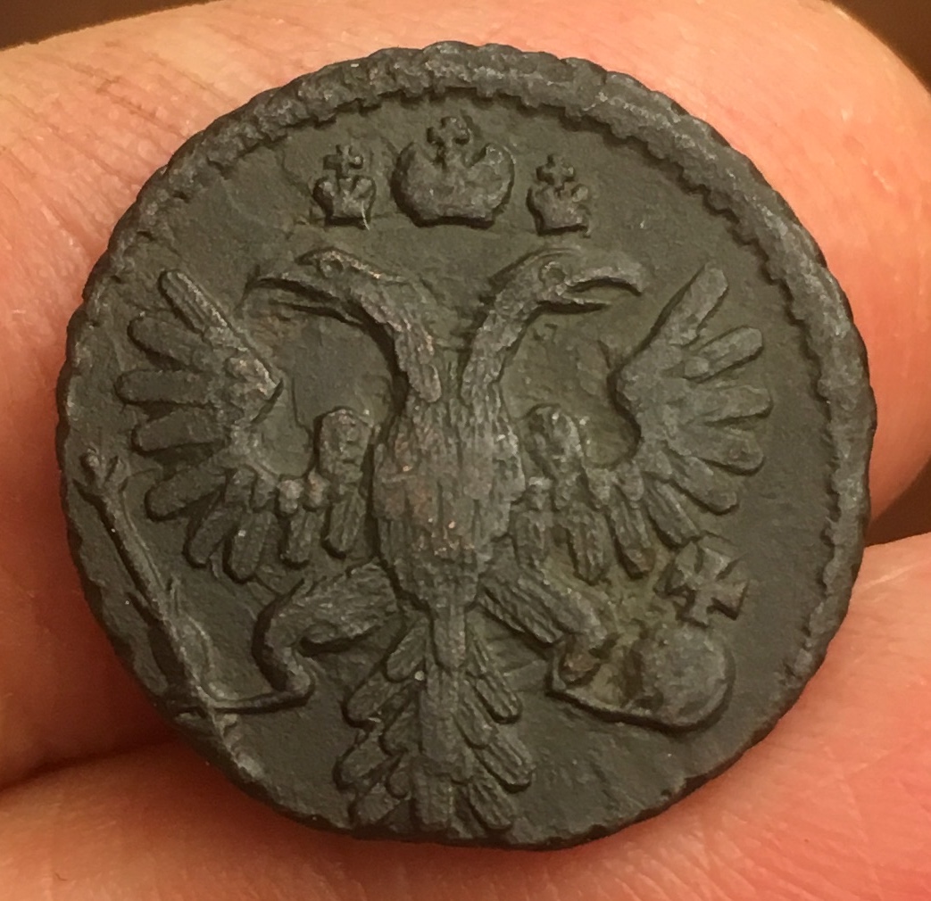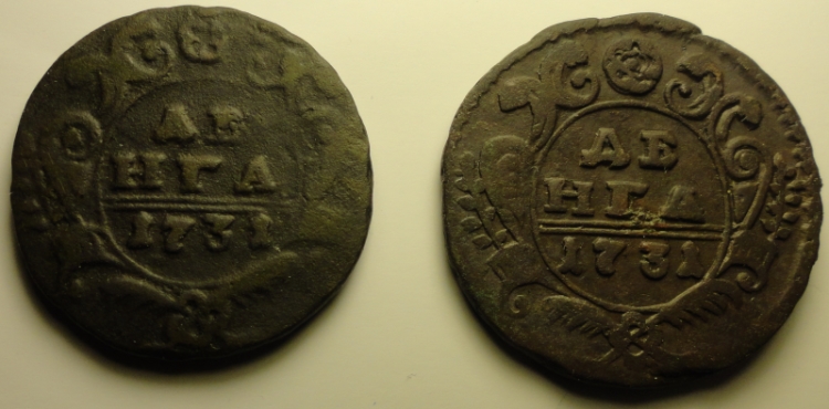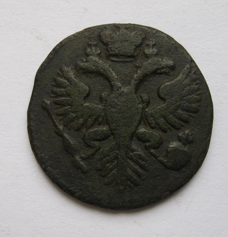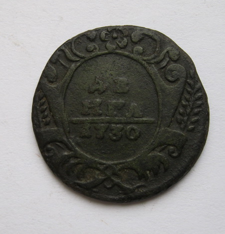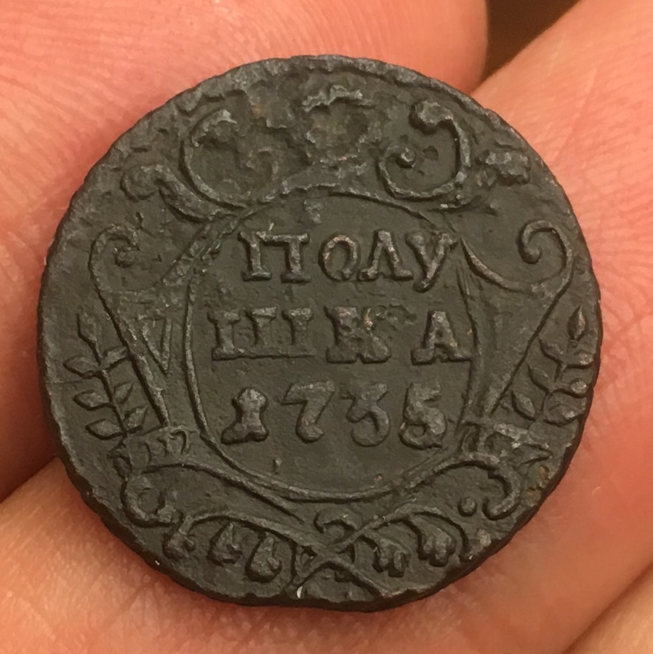 Точно такого штемпеля там не нашел .Но это не о чем не говорит.На мой взгляд простая , но сохран не плохой. Сколько дадут не знаю ) т.к 1735 год статистически самая частая монета из денги и полушки .