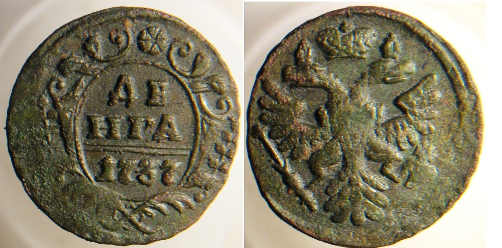 QUOTE(Миша Питерский @ Jan 16 2019, 08:06) Спасибо! Я не силён в монетах, подскажите пож., такая розетка на каком дворе чеканилась? Наберите в поисковике : Полушка и денга 1730-1754 гг -------------------- Чем ближе к Богу , тем больше правды.