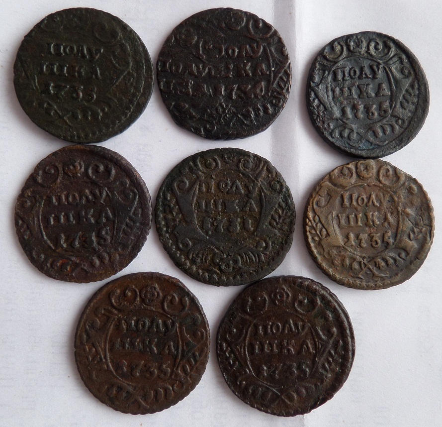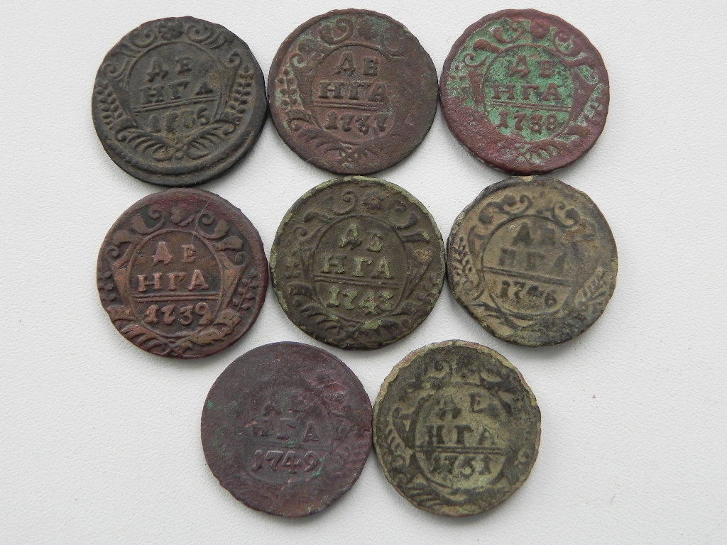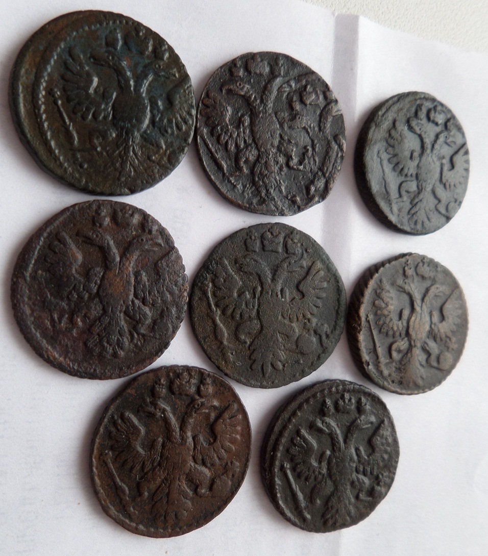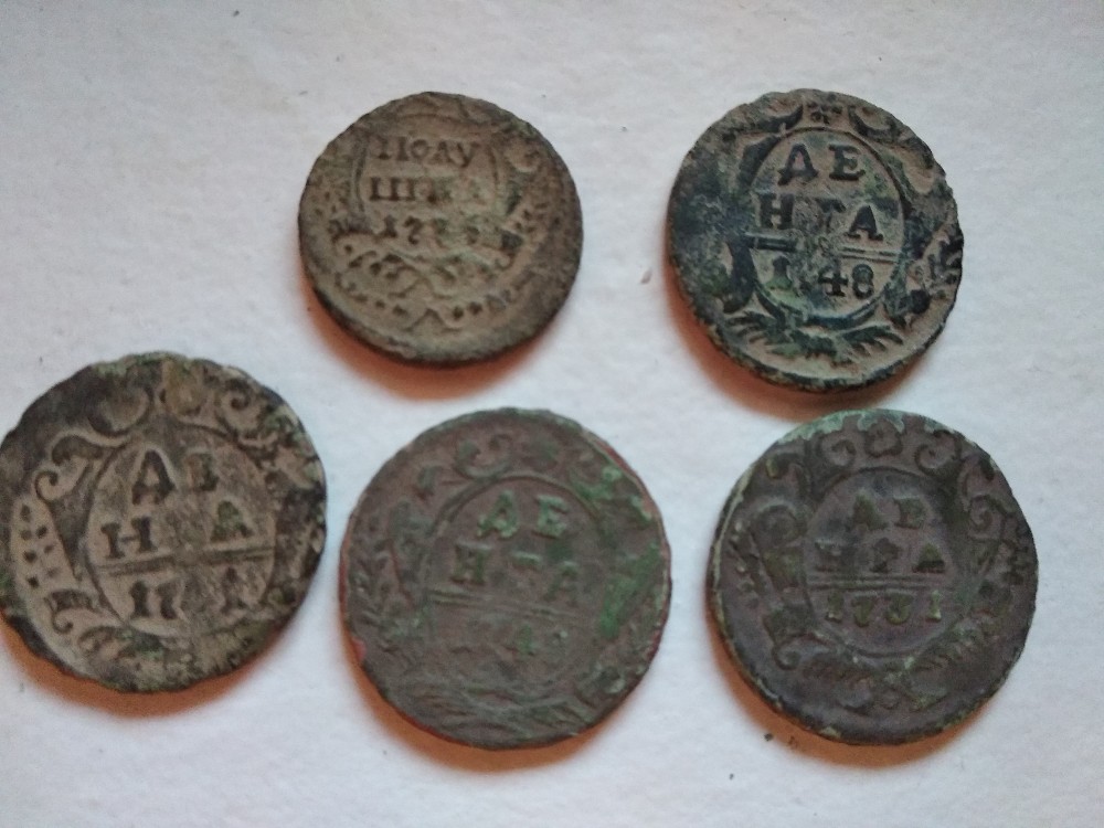 Всем доброго дня! Подскажите пожалуйста кто в теме что за следы на денга 1737 аверс и реверс, а также 1739 в хвосте точка? Оценку если можно? Спасибо ответившим. цена минимальная,37 холостое соуд., а о точке можно рассуждать или, или, или, на цену не влияет |