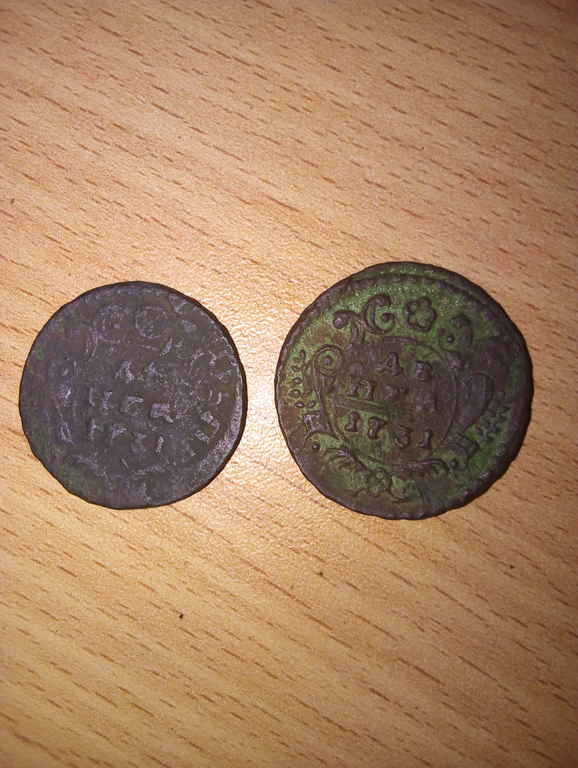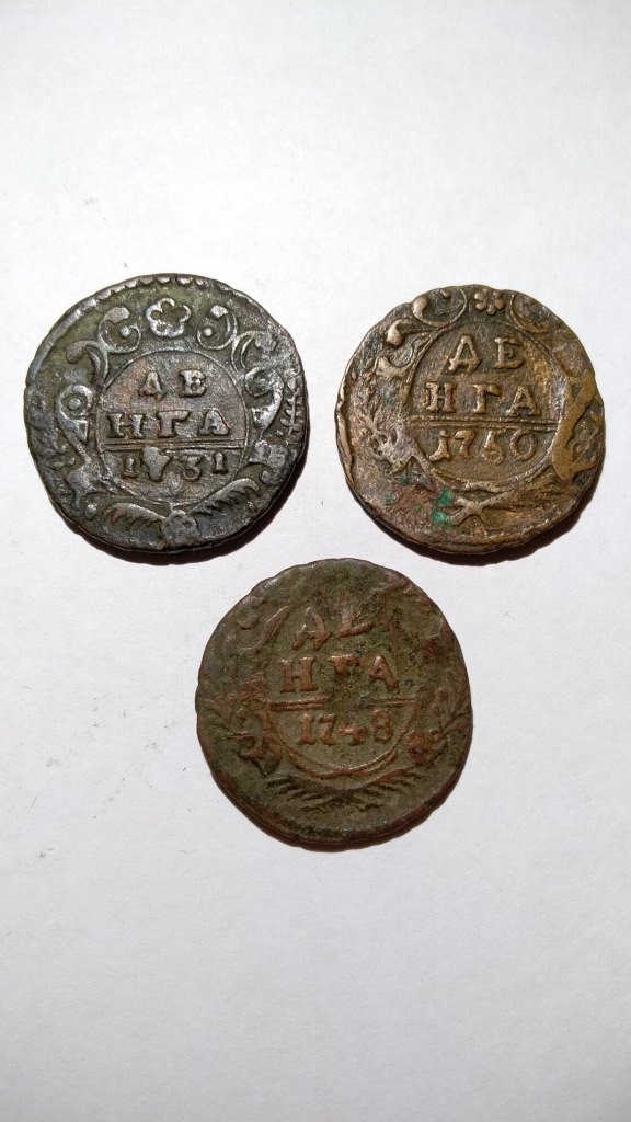 Но, по денгам могу подсказать. QUOTE(aksenov- @ May 29 2019, 09:57) Здравствуйте. Подскажите пожалуйста, есть что то интересное среди данных монет? Нет, все простые QUOTE(Балатон @ May 30 2019, 11:31) Здравствуйте! Прошу помощи в оценке деньги 1748 года в данном состоянии. Монета ничем не чистилась.Патина родная-кладовая. В таком хорошем рельефе редко продают, я что-то затрудняюсь оценить. Зелёнка, жаль, ещё осталась местами, но, её лучше не трогать. QUOTE(Мэйсон @ May 30 2019, 22:04) Господа, хорошо что нашел эту тему. Попала в руки денга 1731, но обратите внимание на размер правой! У меня их много, но эта явно больше остальных размером. Для этого года такое расхождение в размере это норма |