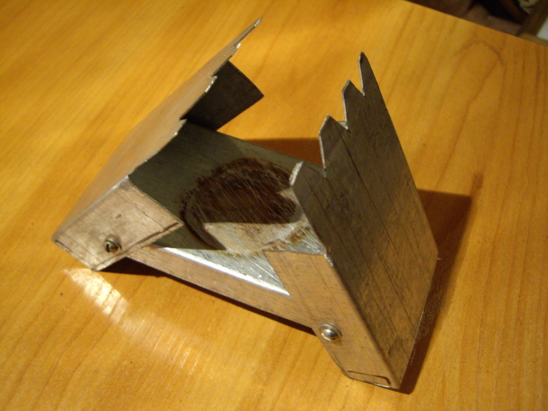 -- Доброго всем. Смастерил сегодня подставочку под кружку. Под сухое горючее.....Кружка железная на 300 гр. закипела без крышки за 10 мин. Расход - пол таблетки сух. горючего. Проверку прошла. Материал жесть оцинковка 0.8 мм. Раскладывается на 180 градусов. Для пеших походов , лёгкая , место много в рюкзаке не занимает. с ув.