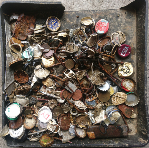QUOTE(Чёрный скат @ May 7 2021, 10:57) Эдик, а кольцо на сколько потянуло?. Толстенькое и цвет хороший. Вес по любому должен быть. кольцо на 7,5 грамма, старое производство, не чета новым изделиям! сегодня золота не было, хотя попался дырявый шарик очень приятного цвете, может и оно один уважаемый сенсей с нашего форума научил меня варить чудо-суп, так я теперь не парюсь с неопределенными изделиями, а просто собираю их всех до кучи, потом в полнолуние над ними бью в бубен и колдую, результат частенько радует ![]() у меня появилась манечка разбивать ржавые и бесформенные комки, размер которых иногда очень внушителен, у нас их великое множество и фонят они черметом, содержимое таких комков иногда удивляет вот в одном был такой шплинто-болт, как оказалось в отличном сохране металл в нем просто отличный, в добавок еще и не толстый конус, я его шлифану и буду использовать как ровнялку для кривых колец ![]() в другом комке оказались вросшие в него часы Caravelle , примерно 70-ых годов выпуска самое интересно что написано что они не Water proof а Water rsistant, а под стеклом ни капли воды, вот где качество! не удивлюсь если я их нормально почищу, промою и они пойдут ! ![]() как и обещал фото вчерашнего гробика, его таки затянуло между камней, сегодня еле вытащил чтоб сфоткать ![]() Сообщение отредактировано pripa: May 7 2021, 23:08 -------------------- Самое прекрасное в поиске - это сам поиск !
