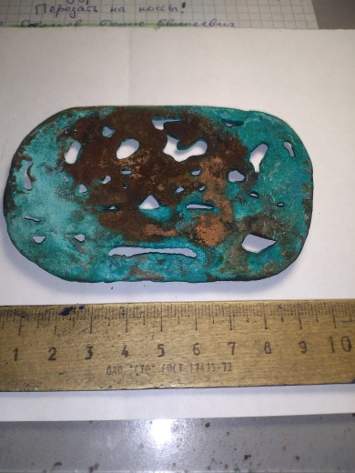 Предмет не внушает доверия,на первом фото напрягает патина,скорее всего наведенная...