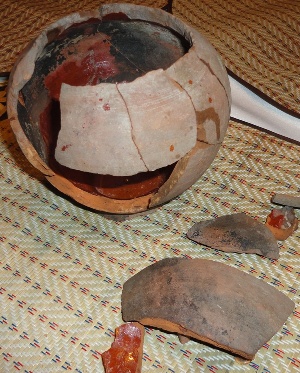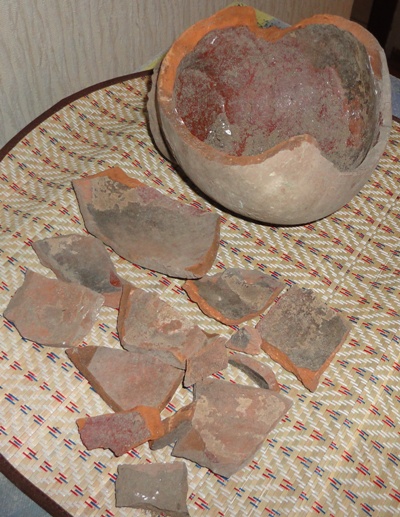 Горшок как-будто и не разбивали.Теперь туда мелочевку ходячную и в землю