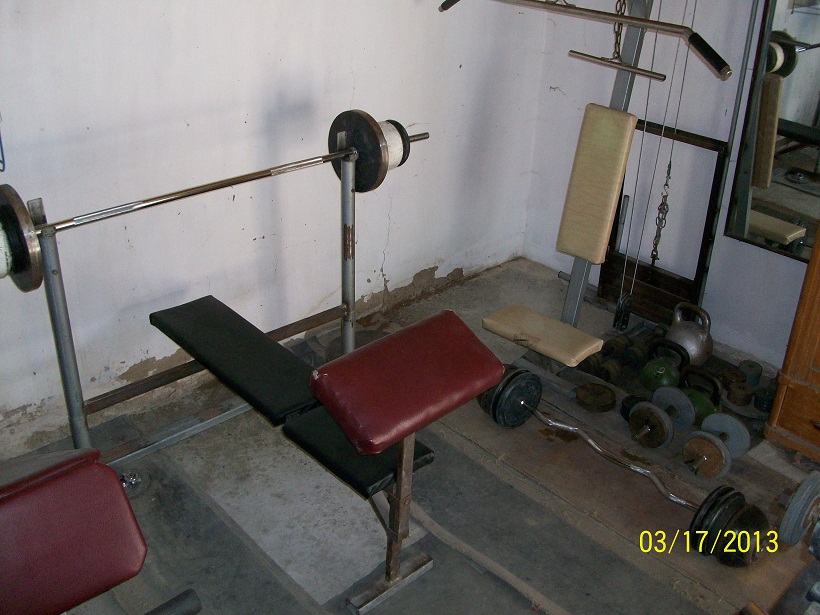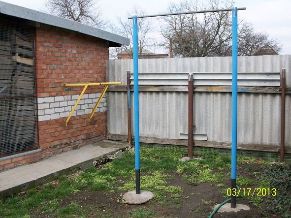 Всем привет! Решил и я показать свой небольшой спортуголок, расположенный в сарае с инструментами. Кроме двух грифов да нескольких покупных блинов, всё остальное делал сам. Иногда находит вдохновение, начинаю что-то изобретать, творить. Нравится мне это дело. К спорту приобщился ещё в школе, потом военное училище и досих пор не угомонюсь,а ведь уже 40 . Всё время занимался и занимаюсь для себя, так сказать для поддержания тонуса. Сейчас вот хочу воплотить свою давнюю мечту в реальность : сесть на поперечный шпагат. Может кто-то из вас подскажет эффективные упражнения. Спортивным питанием никогда не увлекался, а вот недавно решил попринимать аминокислоты. Вроде вес в жиме лёжа сдвинулся с места.