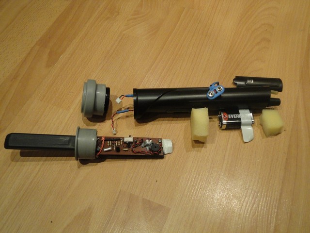 Честно говоря - никак специально не крепил. Так получилось, что плата по ширине влезла между двух центрирующих ребер внутри (те, что батарейки поддерживают, три ребра вдоль оси корпуса) и села там идеально. Подпер ее куском поролона и все. |