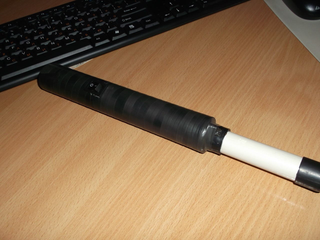 Важный момент - что он у вас разборный. Я по этому поводу не заморочился, залепил все наглухо и теперь немного жалею. Длина у меня примерно 27-30 см, в принципе роли не играет - висит на поясе сзади в чехле и нисколько не мешает. |