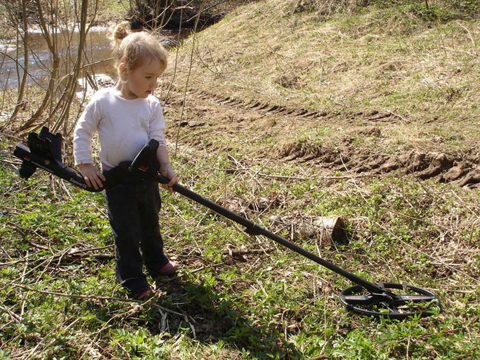 Я много времени проводил сидя за компьютером, но самому всегда хотелось что-то особенное и интересное, не забываемое. Иногда путешествуя по интернет случайно попадал на форумы и сайты с поисковой тематикой. И ввсегда когда я смотрел фото находок, безумно интересно найти что-то самому. Как то я задался целью сделать самодельный детектор и сделал, пусть без дискриминатора, но он работал! И я им нашёл максимально для меня ценную находку гвоздь! Вам наверно сейчас смешно, но не было предела моей радости от понимания что я держу в руках старинный квадратный гвоздь. Так меня зацепило. Потом самодельный детектор пришлось срочно продать за бесценок. Шли месяцы и я всё больше и больше скучал по поиску, иногда проезжая на машине красивые окошенные поля представлял как буду ходить по ним с МД. Но своё время пришло и я стал счастливым обладателем заводского металлодетектора, к выбору которого я подходил основательно, так как уже имел представление о поиске. Родители совершенно хорошо отнеслись к моему дорогому увлечению, и добавили к моим средствам ещё не много, так как не хватало. Честно сказать например на ноутбук они бы мне не добавили. А значит и им моё увлечение по душе. Как только приехал я с новым прибором домой, то сел за изучение инструкции оного. Было уже поздно, стало темнеть и хотелось скорее попробовать прибор, я сорвался и поехал на собственную дачу. Раньше на месте её была помойка и нашёл я только всякий хлам. Да и искать там было не возможно, ну слишком много мусора. После этой поездки я решил описывать каждый свой коп (выезд), уже набралось примерно 10 страниц А4. У моего брата есть дочь Аня, ей пока что всего 6 лет, но она уже проявляет самый настоящий и здоровый интерес к приборному поиску. Всегда когда я подъезжаю к дому на машине, она подбегает и начинает расспрашивать что нашли и сколько, а потом хвалится своим друзьям. Когда только начал писать эту статью, то рассчитывал просто на текст и совсем забыл что у меня был один выезд с ребёнком, а именно с Аней. Было это ранней весной и брат предложил вместе нам поехать в одно интересное на находки место. Надо сказать туда мы уже много раз ездили и ни как не могли найти его. Причём располагалось оно примерно в 5 км по полям, дорога только разбитая просёлочная с лужами и непролазной грязью. На машине туда никак не проехать. Но когда брат сказал что с нами будет ребёнок, то я отнёсся как-то категорически, ну сами посудите 5 километров по полям. На улице не сказать что тепло, а всего градусов 8-10. Ну и отказать я совсем не мог, и мы отправились. Сколько смогли проехали на машине, а именно только по асфальту. По показаниям GPS навигатора наше место располагалось на удалении от асфальта 4,7 км на прямую. А дорога была извилистая, значит можно смело считать что все 5. Мои представления были что начнётся дикий плач и полное не удовлетворение от этих прогулок по полям со стороны Ани, и наш поиск быстро обернётся в бегство с полей. Но не тут то было. Она была молодцом и нормально перенесла. Причём хочу отметить она не просто присутствовала на поиске, а именно искала. Пока мы с братом копали ямку, Аня в этот момент ходила примерно от нас на удалении в метров 300 и искала разные интересные ямки и канавки, после чего сообщала нам. Дали и прибор ей попробовать, но маленькая она ещё для этого. А так же она была хранителем не м