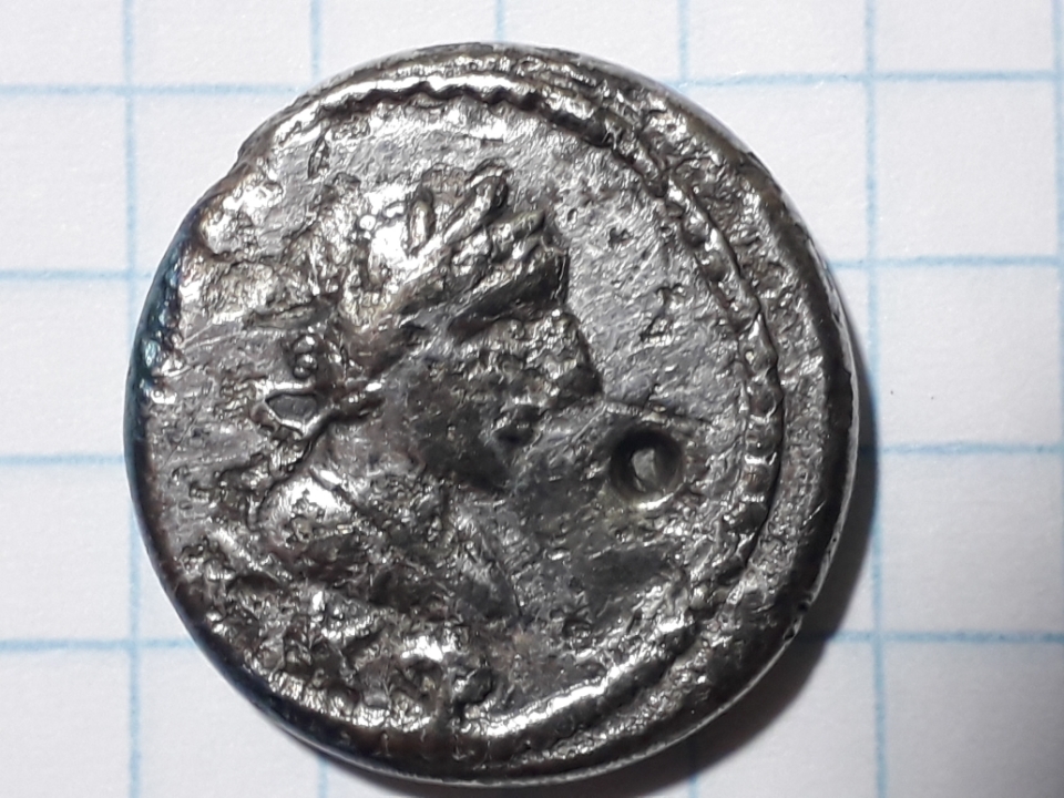 Добрый день. Это Боспорское царство, 230 год н.э. Савромат III. Но почему точки справа должно быть две, а на этой одна.
